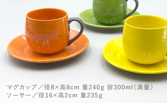 【波佐見焼】ココアマグ&ソーサー 3色セット オレンジ・黄色・黄緑【陶芸ゆたか】 [VA149]