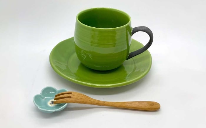 【ふるさと納税】青磁椿彫マグカップ 023-H358