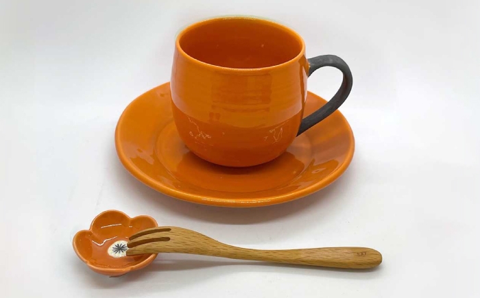 - 【波佐見焼】ココアマグ&ソーサー 3色セット オレンジ・黄色・黄緑【陶芸ゆたか】 [VA149]