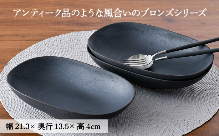 【波佐見焼】ブロンズ ブラック オーバルボウル 3枚セット 食器 皿 【長十郎窯】 [AE44]