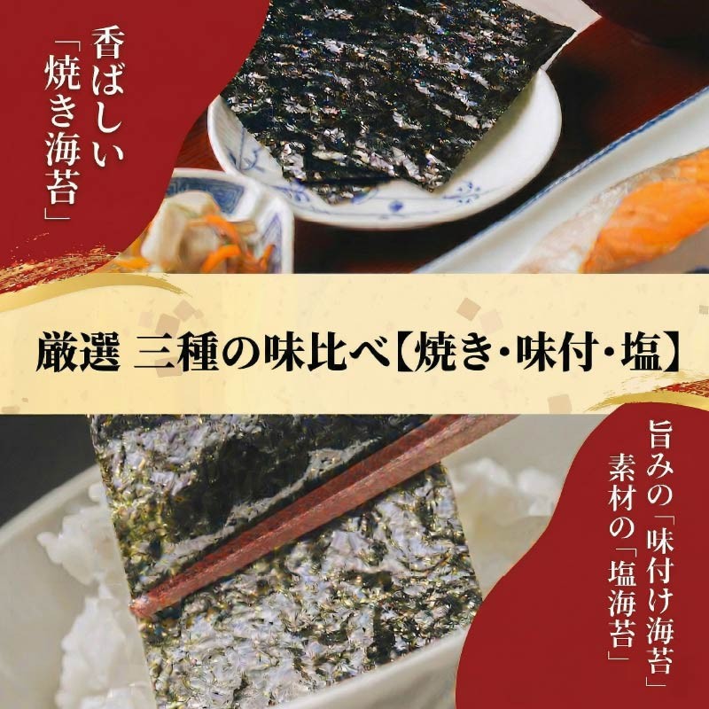 - 【 プロ御用達 】 【 お試し3種セット 】 3袋 8ッ切 30枚 味付けのり あじつけのり ajitukenori 焼海苔 焼き海苔 やき海苔 塩海苔 高級 海苔 有明 有明海 nori yakinori のり ご飯のお供 一番摘み 国産 家庭用 無添加 竹内海苔 大阪 松原