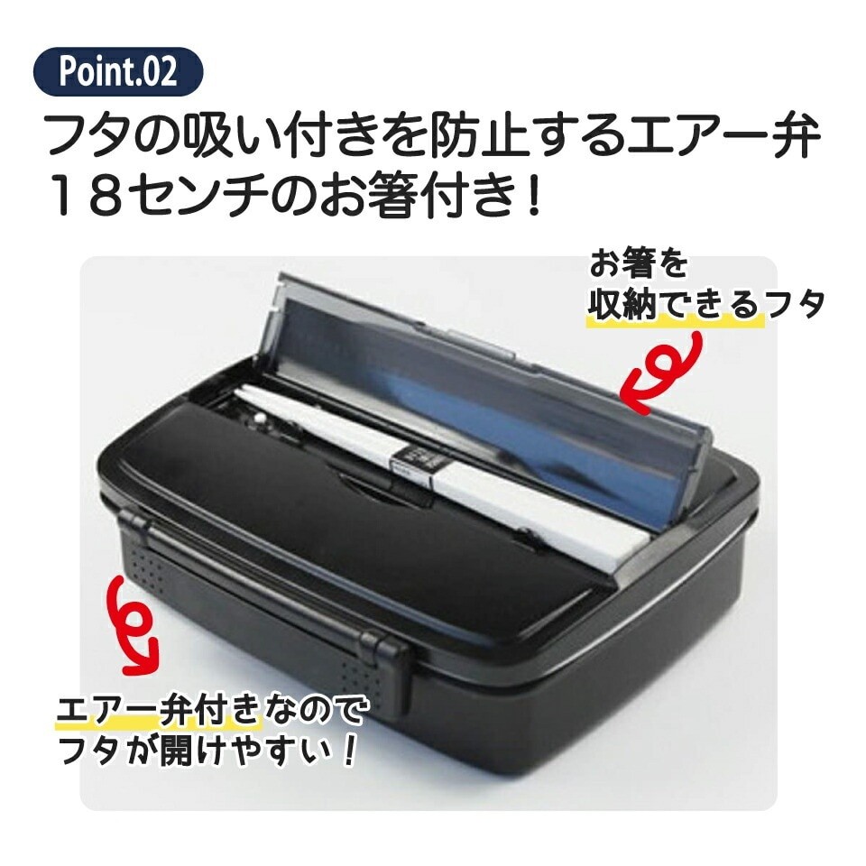 - 松花堂タイトランチボックス 1段/870ml < skater> モダン+BK/PO5S_4973307121944 プラスチック 弁当箱 ランチボックス 仕切り 中子付き パッキン エアー弁付き 箸付き(18cm) 強化構造 電子レンジ対応 日本製 男の子 男子 メンズ 男性 奈良県 奈良市 なら 5-137