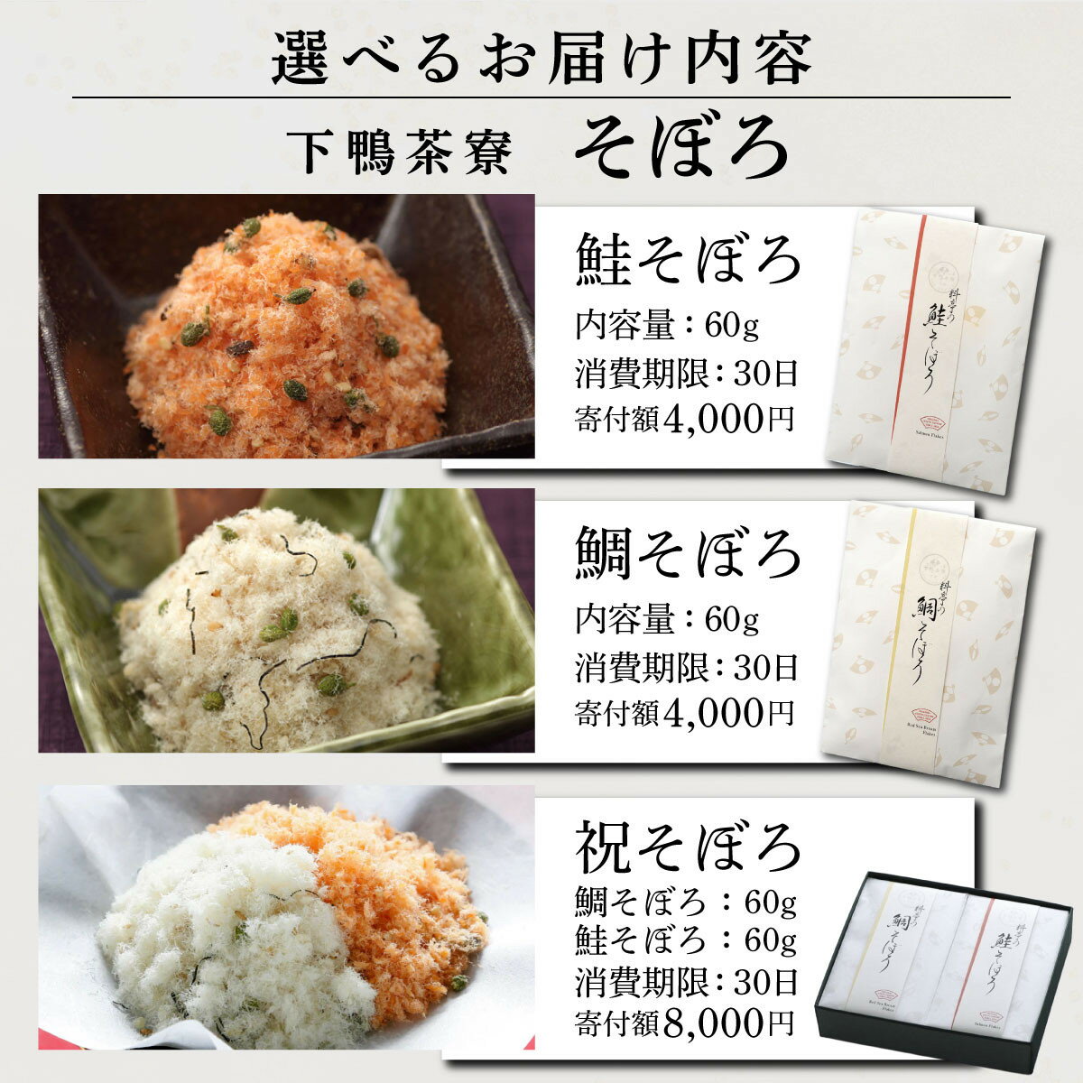 【ふるさと納税】【下鴨茶寮】鯛・鮭そぼろ 選べる2種3セット|京都 老舗料亭 名店 ご飯のお供 酒肴 人気セット [ 料亭仕込み 鯛そぼろ 鮭そぼろ 贅沢 グルメ 美食 お取り寄せ 通販 送料無料 ふるさと納税 ]