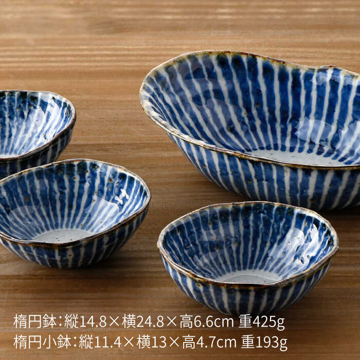 【ふるさと納税】【波佐見焼】染十草 手造り 楕円鉢・楕円小鉢 ボウル セット 食器 皿 【陶豊】 [OE03]