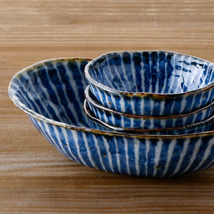 - 【ふるさと納税】【波佐見焼】染十草 手造り 楕円鉢・楕円小鉢 ボウル セット 食器 皿 【陶豊】 [OE03]