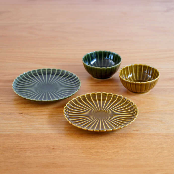 【波佐見焼】黄蘗色(きはだ)色の波佐見焼 6型セット 小皿 茶碗 小鉢 大皿 食器 皿 【DRESS】 [SD04]