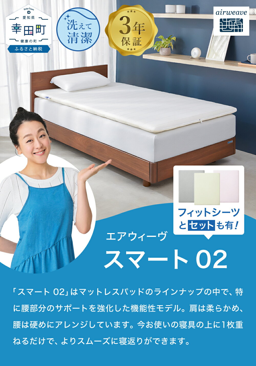 【ふるさと納税】エアウィーヴ スマート02 シングル セミダブル ダブル 選べる フィットシーツ セット | 高反発 マットレスパッド マットレストッパー ベッドパッド 高反発マットレス 寝返りしやすい 体圧分散 マットレス 日本製 airweave