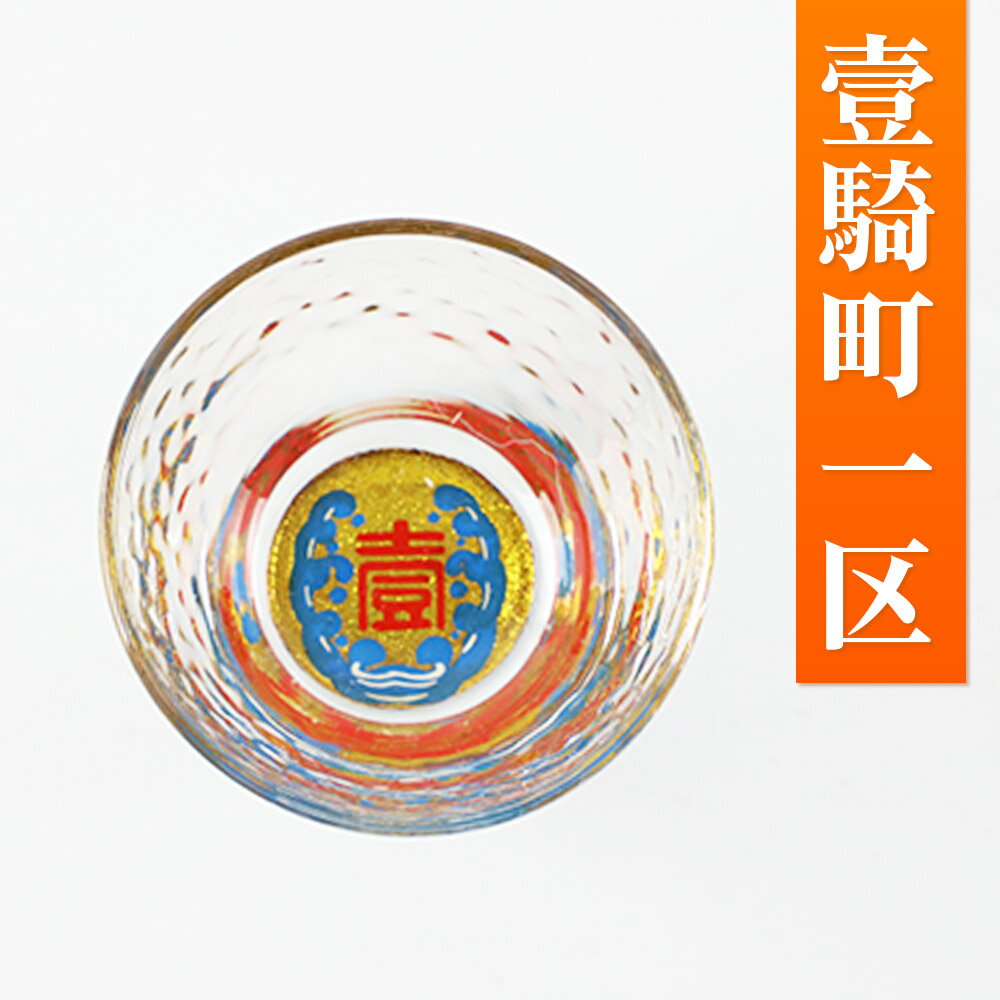 【ふるさと納税】川連蒔絵ガラス 土崎港曳山まつり町紋ぐい呑(杉箱入り)【壹騎町一区】