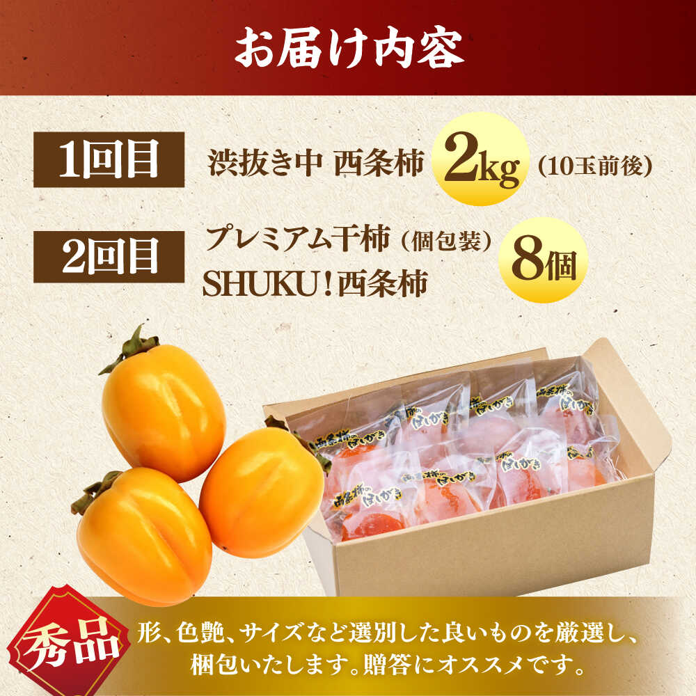 - 【ふるさと納税】【先行予約】【10個限定】【全2回定期便】柿のご褒美セット! 合わせ柿2kg 干柿SHUKU8玉 島根県松江市/マルカミ農縁株式会社 [ALCM018] | 干柿 干し柿 柿 カキ かき 秋 フルーツ 果物 スイーツ ドライフルーツ 高糖度 高級柿 ギフト 贈答 人気 くだもの