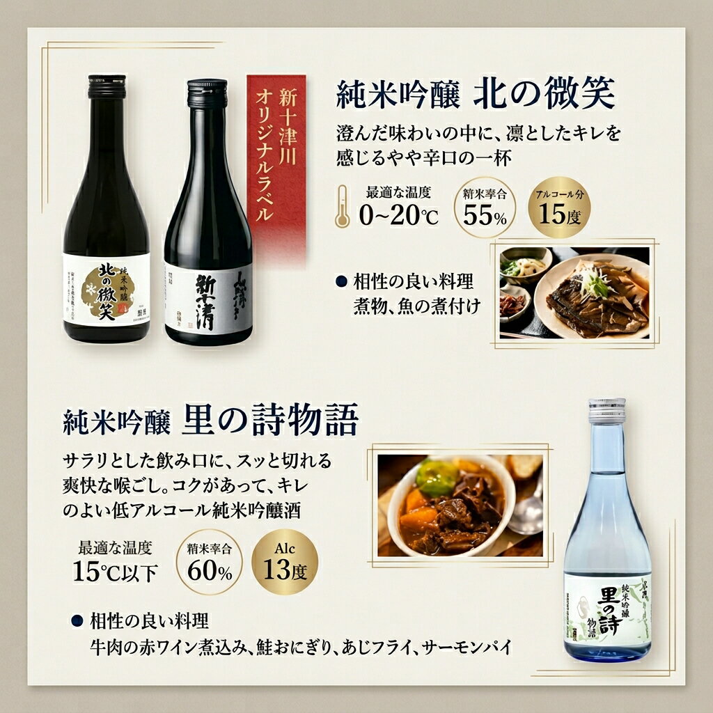 - 【ふるさと納税】【金滴酒造】日本酒6本セット(各300ml) 純米吟醸 & 本醸造 詰め合わせ 北の微笑 里の詩物語 杜氏の夢呑 杜の詩物語 地酒 新十津川オリジナルラベル 北海道 新十津川町 【新十津川町】