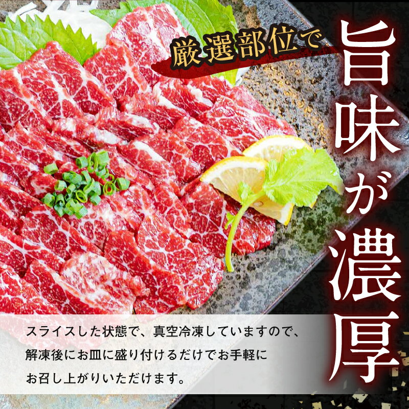 【ふるさと納税】熊本 特選 スライス 馬刺し 100g × 3パック 300g 醤油 6袋 高級馬刺し専門店 桜屋 旨み 濃厚 厳選 あっさり ヘルシー 真空冷凍 肉 馬肉 赤身 刺身 お寿司 肉寿司 生食 生肉 おつまみ 酒の肴 おかず 冷凍 お取り寄せ グルメ 送料無料 【熊本県宇土市】