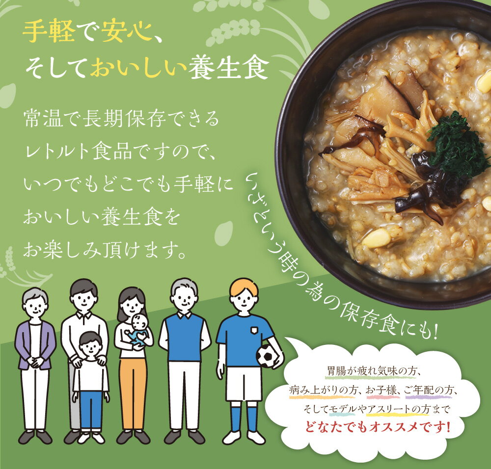 - 【ふるさと納税】漢方薬局のこだわりレトルト粥 全種セット 【選べる定期便:3回/6回/12回】 (1回あたり:合計5個) 養生粥 鶏塩粥 きのこ粥 数量限定粥 おかゆ お粥 レトルト 簡単 グルテンフリー 添加物不使用 漢方 常温保存 保存食 長崎県 長崎市 送料無料