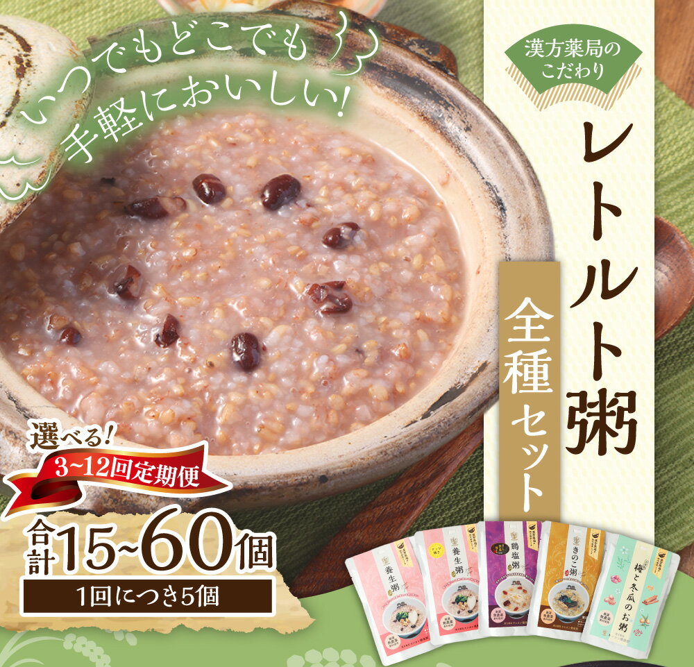 【ふるさと納税】漢方薬局のこだわりレトルト粥 全種セット 【選べる定期便:3回/6回/12回】 (1回あたり:合計5個) 養生粥 鶏塩粥 きのこ粥 数量限定粥 おかゆ お粥 レトルト 簡単 グルテンフリー 添加物不使用 漢方 常温保存 保存食 長崎県 長崎市 送料無料