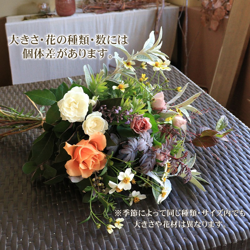 花 ブーケ Mサイズ 生花 季節 季節のお花 花材 インテリア 雑貨 おしゃれ かわいい 可愛い 植物 グリーン スワッグ ガーランド 記念日 贈り物 プレゼント ギフト バラ カスミ草 香川県 丸亀市