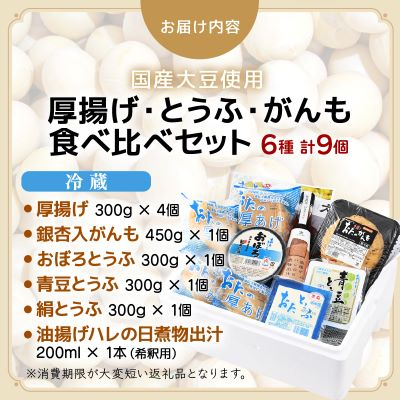 - 油あげ煮物だしと 国産大豆 厚揚げ とうふ がんも 食べ比べ セット【配送不可地域:離島・北海道・沖縄・東北・関東・中国・四国・九州】【1461730】