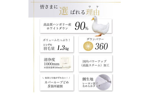 - 【パウダーグレー(無地)】軽くて暖か 羽毛布団 シングル 本掛け ハンガリーホワイトダウン90% DP360 立体キルト<京都金桝>|アクア