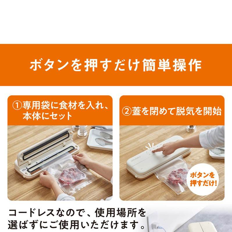 - 【テレビで紹介】真空パック機 コンパクト コードレス 家庭用 フードシーラー VPF-C50 アイボリー アイリスオーヤマ 真空パック機 真空パック器 フードシーラー 真空シーラー 真空 備蓄 米 保存 脱気 包装 梱包 酸化防止 冷凍 湯せん