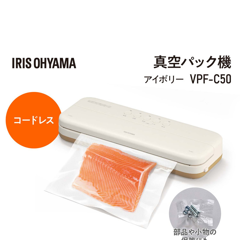 【テレビで紹介】真空パック機 コンパクト コードレス 家庭用 フードシーラー VPF-C50 アイボリー アイリスオーヤマ 真空パック機 真空パック器 フードシーラー 真空シーラー 真空 備蓄 米 保存 脱気 包装 梱包 酸化防止 冷凍 湯せん