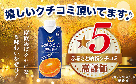数量限定 みかんジュース ストレート 果汁100% さがみかん100%搾り 330ml × 12本 計3960ml | みかんジュース 100% ストレート 紙パック 甘い 温州みかん みかん ストレート オレンジジュース ミカンジュース フルーツ 果物 飲み物 ジュース 飲料 濃厚 フルーティ 鹿島市 人気 おすすめ リピーター B-245