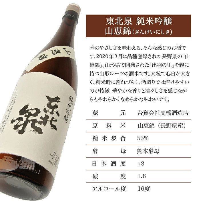 - 東北泉 純米吟醸 山恵錦 ひやおろし 1800ml×1本 高橋酒造店 さんけいにしき 山形県 遊佐町 庄内 日本酒 お酒 清酒