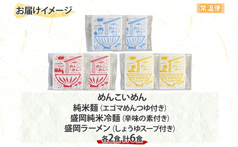 - めんこいめん 3種 食べ比べ Bセット 計6食 純米麺 純米冷麺 盛岡冷麺 盛岡ラーメン 盛岡三大麺 ご当地グルメ ラーメン 米粉麺 米粉 麺 冷麺 グルテンフリー 詰め合わせ 郷土料理 もちもち 簡単調理 岩手県 盛岡市 東北 岩手 盛岡 農事組合法人となん