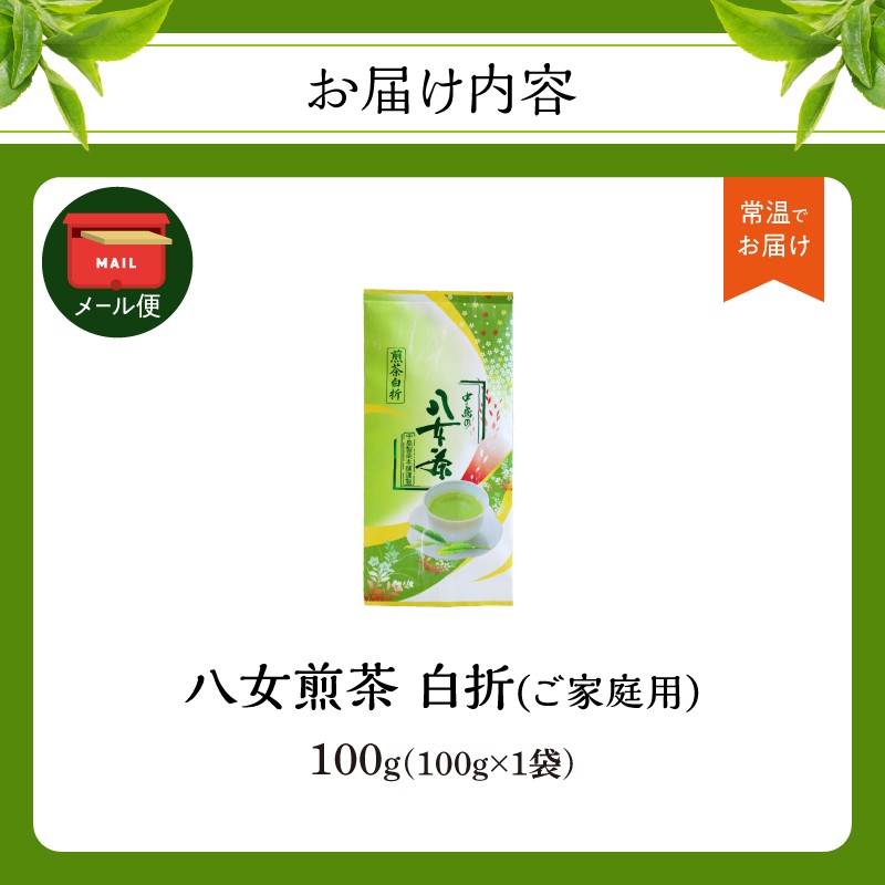 八女煎茶白折(ご家庭用) 100g【メール便】 茎茶 雁が音 お茶 煎茶 家庭用 自宅用 お試し ポスト投函 簡易包装 訳あり