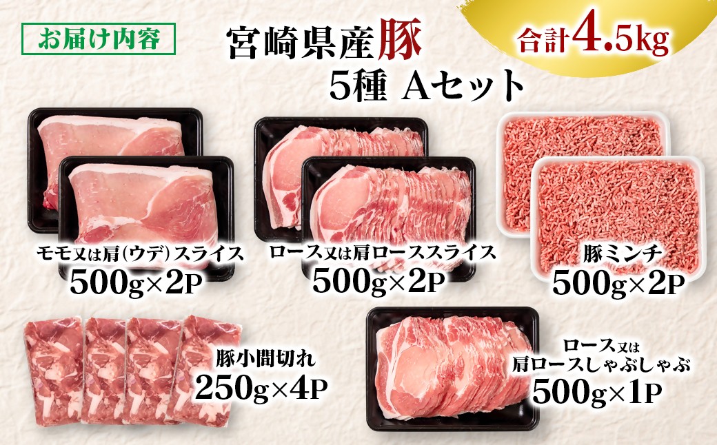宮崎県産豚肉 満載Aセット4.5kg 小分け スライス しゃぶしゃぶ 小間切れ ミンチ <1.9-24>