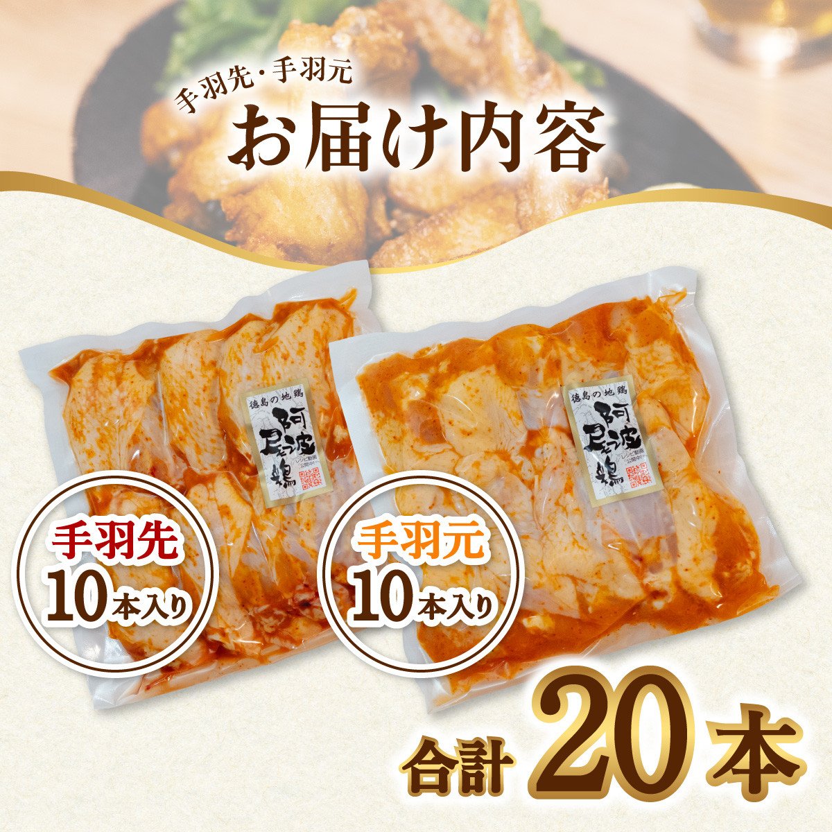 - 阿波尾鶏 手羽先 手羽元 セット 各10本 計20本 阿波尾鶏 唐揚げ 冷蔵 徳島 地鶏 あわおどり