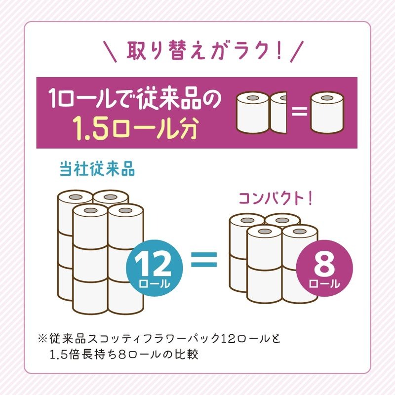 - 定期便 トイレットペーパー ダブル スコッティ 1.5倍長持ち 8ロール × 1パック フラワーパック 香り付き《 3ヶ月ごと計 4回 》
