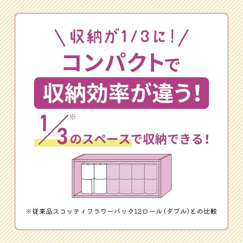 - 定期便 トイレットペーパー ダブル スコッティ 3倍長持ち 4ロール × 1パック フラワーパック 無香料《 3ヶ月ごと計 4回 》