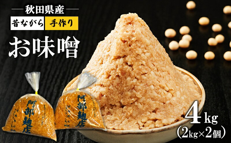 - 【ふるさと納税】秋田県産 昔ながら 手作り お味噌 4kg [ 米味噌 塩分控えめ 秋田県産 みそ 味噌 味噌汁 お味噌汁 ]
