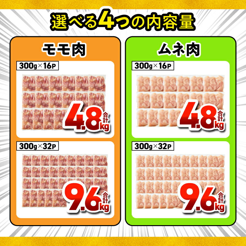 【ふるさと納税】<選べる種類・容量> 鹿児島県産 若鶏 モモ ムネ 切身 4.8kg or 9.6kg セット 鶏肉 鶏 肉 鶏モモ モモ肉 鶏ムネ ムネ肉 小分け 一口サイズ カット済 大容量 からあげ 親子丼 便利 料理 冷凍 ハピネス 鹿児島 鹿屋市 おすすめ ランキング プレゼント ギフト