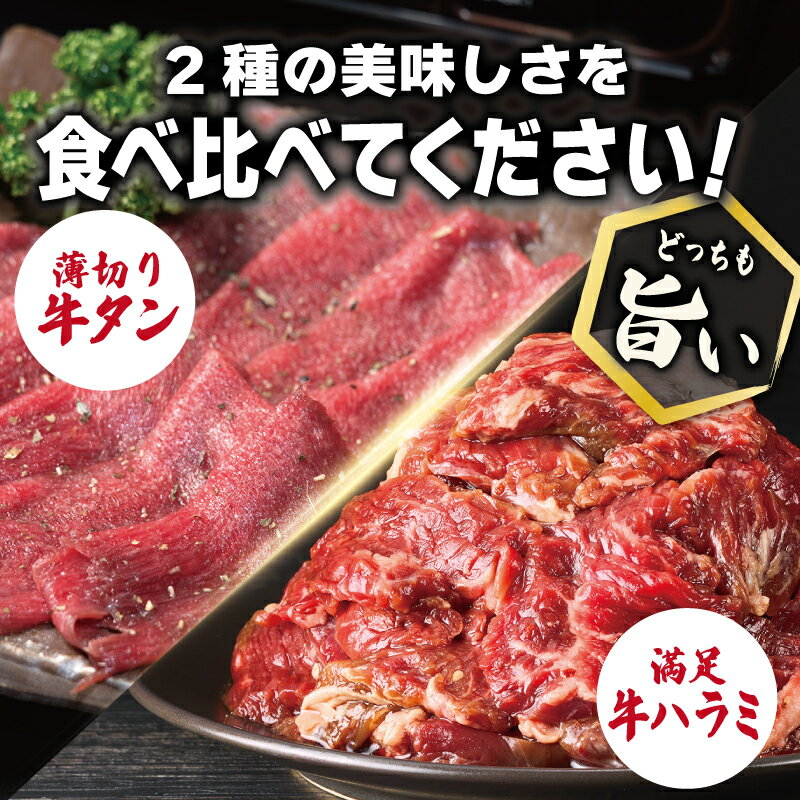 - 【ふるさと納税】牛タン焼肉 オリジナルスパイス&牛ハラミ甘辛 食べ比べ 焼肉セット 選べる 内容量 500g / 1kg / 2kg 小分け 少量パック 焼肉用 牛タン 牛ハラミ BBQ 日常使い 牛肉 肉 冷凍 お取り寄せグルメ 大阪府 泉佐野市 送料無料 肉の泉佐野