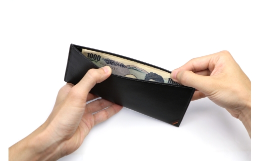 - フタもマチもない薄長財布 ネオブラック 牛革 (栃木レザー)|長財布 メンズ 革 小銭入れなし ファスナーなし フタなし 薄型 薄い 革財布 本革 レザー 革職人 デュアルライン [1392]