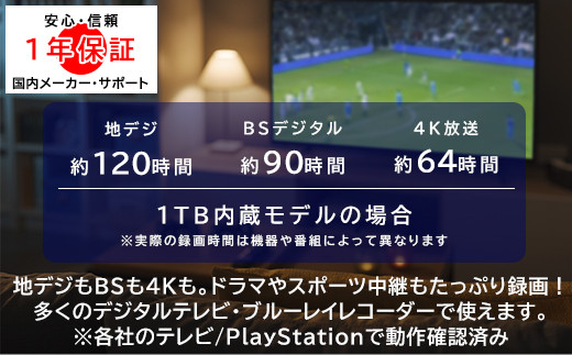 - 【059-05】ロジテック HDD 1TB USB3.1(Gen1) / USB3.0 国産 TV録画 省エネ静音 外付け ハードディスク テレビ 3.5インチ 4K録画 PS4/PS4 Pro対応【LHD-ENA010U3WS】