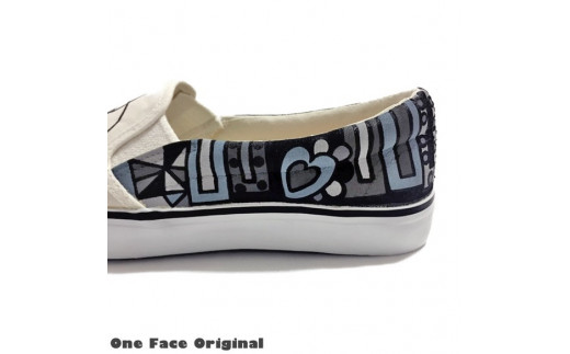 - 手描きスニーカー「ジョーヌQスリッポン」27.0cm モノクロタイプ アシンメトリー【受注制作】