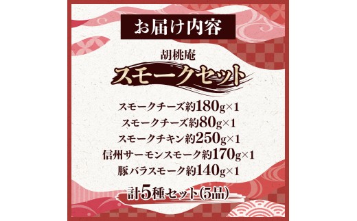 【八ヶ岳の麓・原村 胡桃庵より】 スモーク 5種 セット | スモークチキン スモークチーズ スモークサーモン 信州サーモン 豚バラスモーク 燻製 鶏肉 チーズ グルメ 信州 八ヶ岳 長野県 諏訪郡 原村