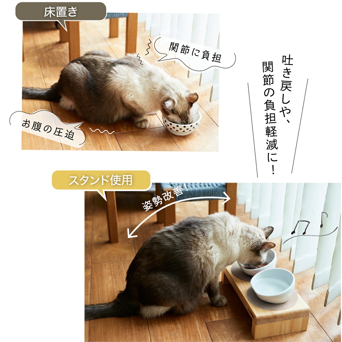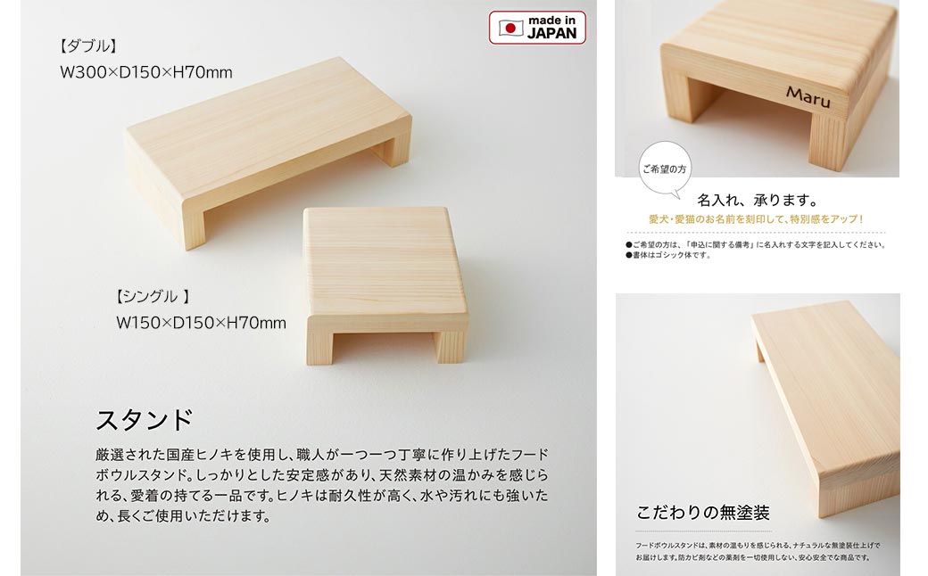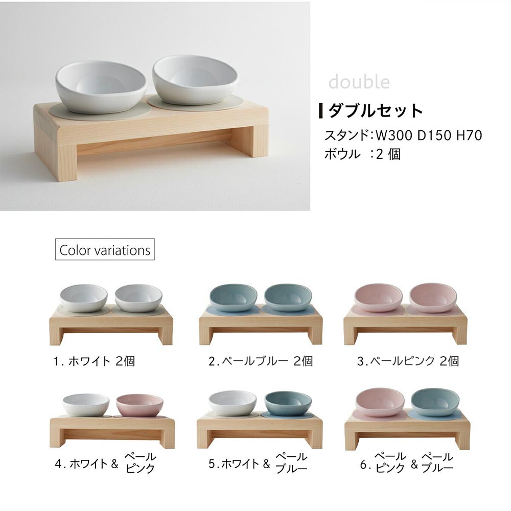 フードボウル スタンド セット 木製 国産ヒノキ 食器 名入れ 「ネコトキ」(ダブル)ペールブルー2個 【四国加工】 ペット用品 猫 小型犬