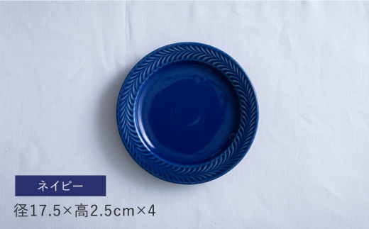 - 【波佐見焼】ローズマリー リムプレートM ネイビー 4枚セット 食器 皿【翔芳窯】 [FE579]
