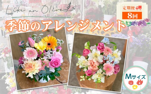 【定期便】アレンジメント【M】(毎月定期便) 【選べる回数:8回】【フラワーアレンジメント アレンジメント 季節の花 生花 花 植物 ブーケ ギフト プレゼント インテリア お楽しみ 】