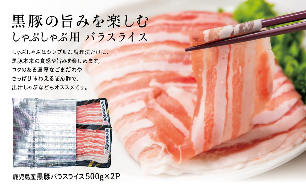 - 【鹿児島県産】黒豚 バラスライス しゃぶしゃぶ用 計1kg (500g×2P) ★最短発送★ 鹿児島県産 国産 豚肉 国産豚肉 豚バラ 豚バラスライス バラスライス しゃぶしゃぶ しゃぶしゃぶ用 豚しゃぶ 冷しゃぶ サラダ 黒豚しゃぶしゃぶ 鍋 お鍋 冷凍 冷凍配送 小分け 小分けパック コワダヤ 鹿児島県 南さつま市