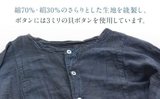 - 手染めシルクコットン切替シャツ BLACK(泥藍染) AO033_P