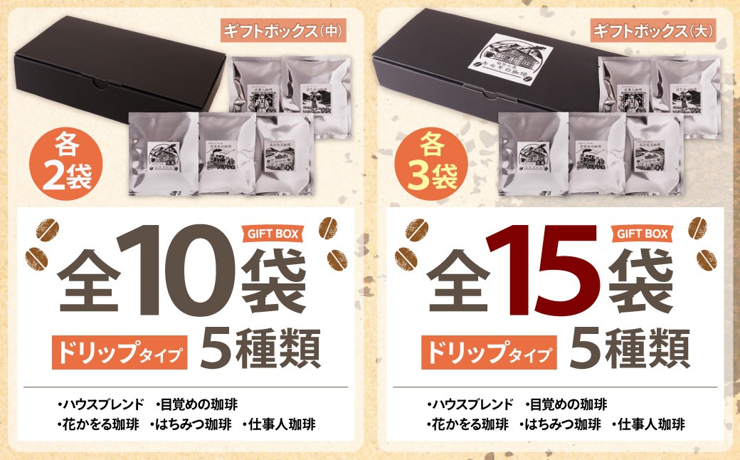 選べるセット!福智山麓キセキの珈琲 ギフトボックス(中/大)10袋~15袋セット ★レビューキャンペーン開催★ Y70