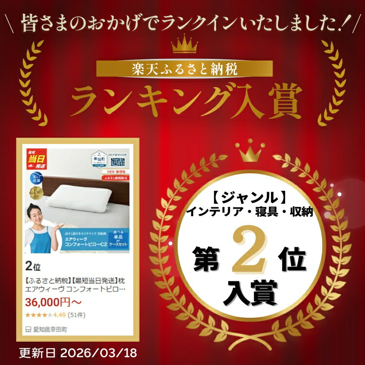 - 【ふるさと納税】【最短当日発送】枕 エアウィーヴ コンフォートピロー C2 【ケース付きも選べる】 【楽天限定】ピローケース ソフト ネイビー ベージュ | 枕 高反発 洗える 寝返りしやすい まくら 快眠枕 安眠枕 寝具 通気性 airweave エアウィーブ【ふるさと納税限定】