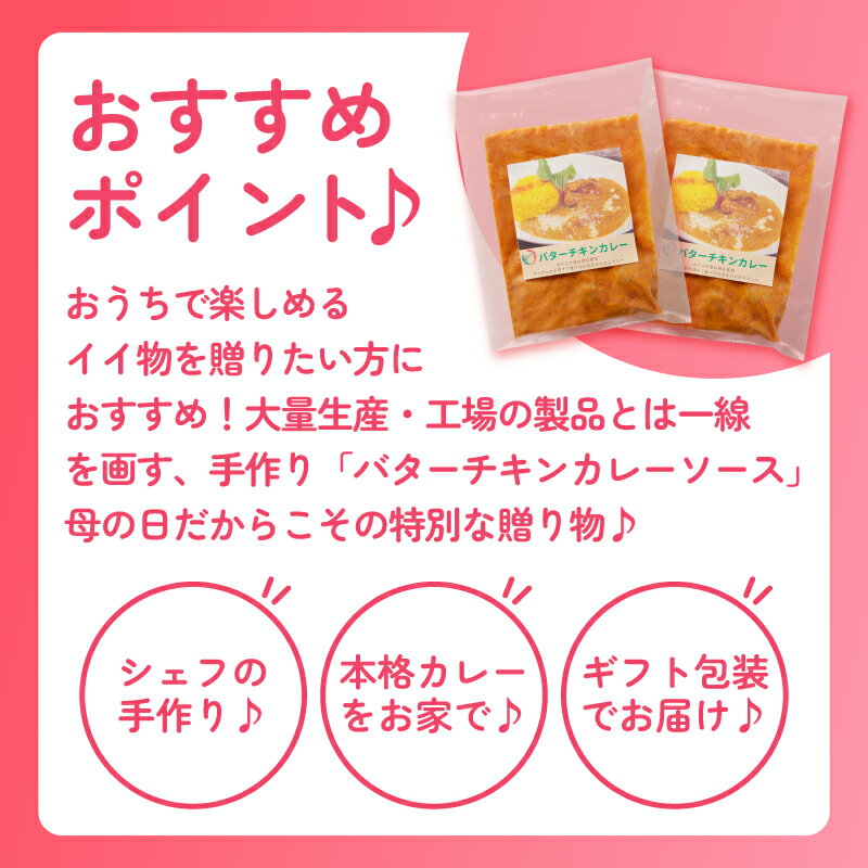 【ふるさと納税】母の日★イタリアンシェフが作るバターチキンカレーソース2袋(250g×2袋) - プレゼント 食べ物 グルメギフト 特別感のある美味しい贈り物 お母さん ママ お義母さん Mother's Day 湯煎調理 レンジ調理 10000円 冷凍 カレー 送料無料【宮崎県木城町】