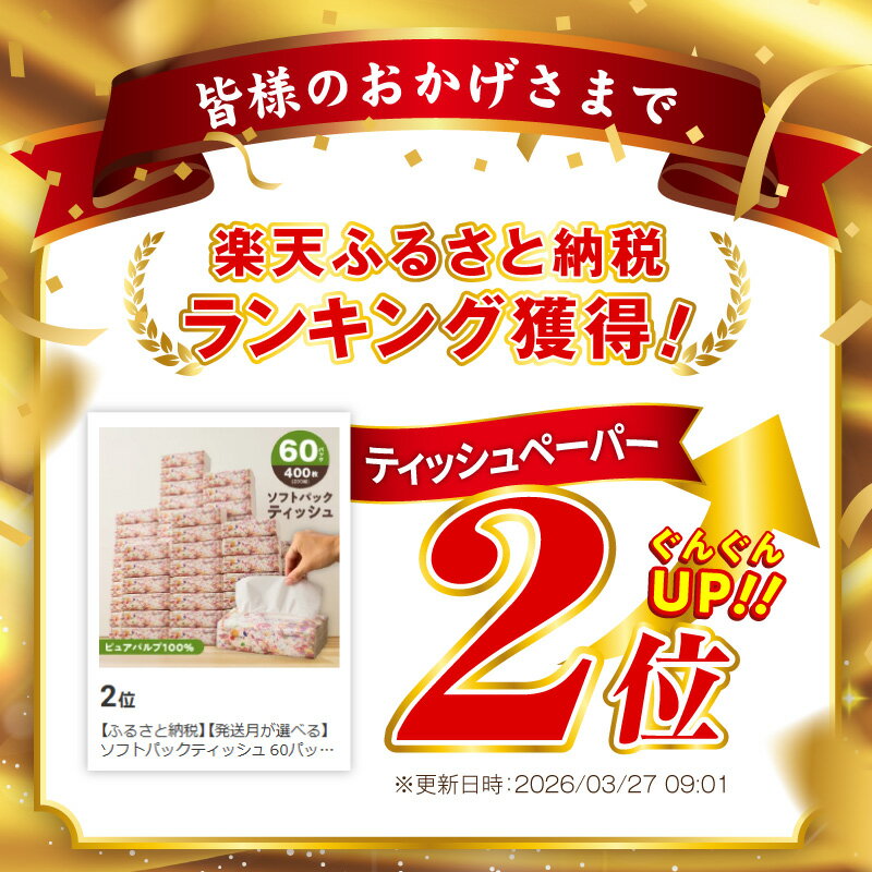 - 【ふるさと納税】【4月発送可】 ソフトパックティッシュ 60パック × 400枚 200組 選べる トイレットペーパー 定期便 コンパクト ピュアパルプ 日用品 紙 常備品 ストック ティッシュ まとめ買い 防災グッズ 2部門ランクイン 大阪府 泉佐野市 送料無料