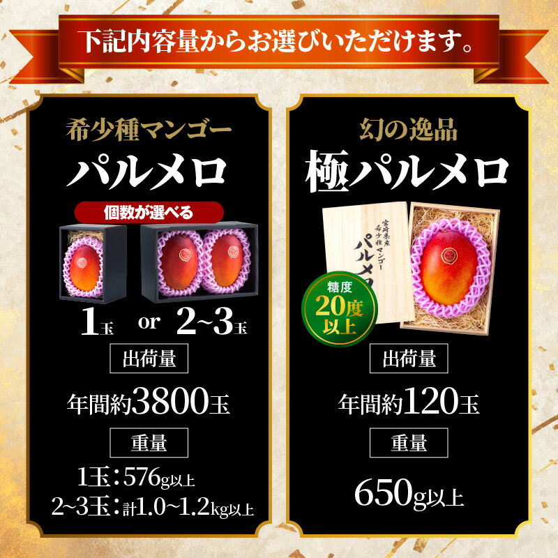【ふるさと納税】《2026年発送 先行予約》【選べる内容量】【数量・期間限定】宮崎県産 希少種マンゴー パルメロ ・ (極)パルメロ マンゴー 完熟マンゴー 果物 フルーツ スイーツ デザート ご褒美 贈り物 贈答 化粧箱 希少 甘み 新鮮 冷蔵 檬栽師組 高糖度 グルメ 宮崎市