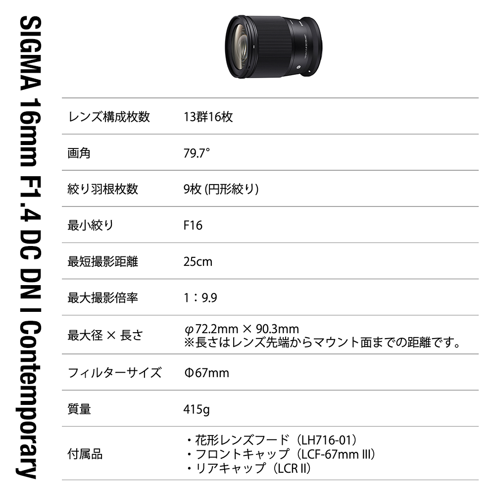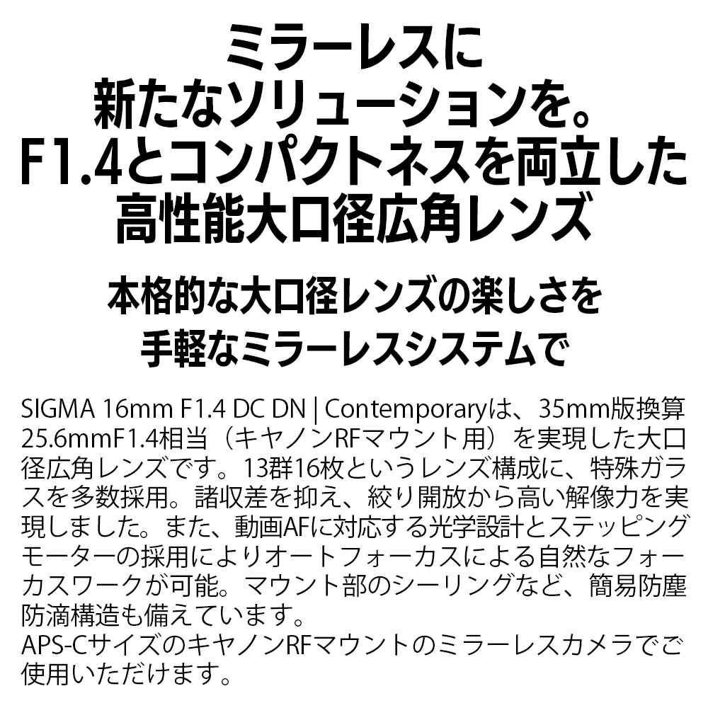 - 【キヤノンRFマウント用】SIGMA 16mm F1.4 DC DN | Contemporary