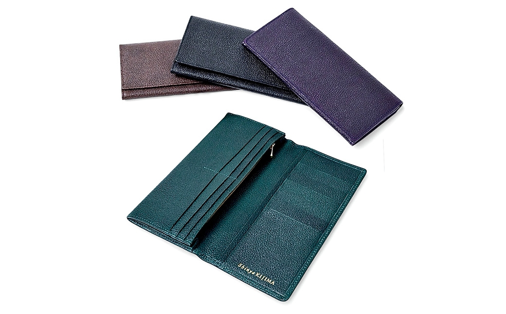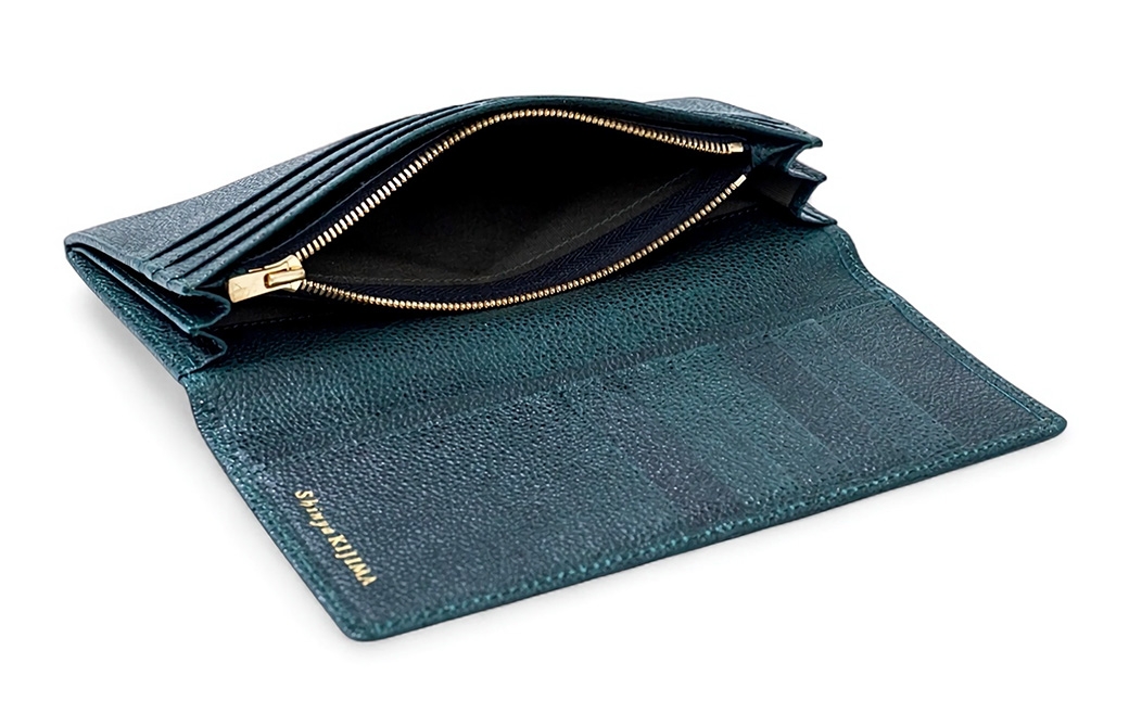 - 【 黒桟革 】 長財布 ( 緑 ) 財布 生活用品 小物 牛革 革 革製品 収納 収納品 なめしの技術 漆塗りの技術 革の黒ダイヤ 天然皮革 国産黒毛和