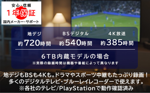 - 【115-01】ロジテック HDD 6TB USB3.1(Gen1) / USB3.0 国産 TV録画 省エネ静音 外付け ハードディスク【LHD-EN60U3WSWH】